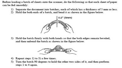 Note 1: Prior to feeding the document to the scanner and before taking any special action I followed the vendor instructions about “loosening” the pages. Note 2: I did not need the original document after I scanned it so did not concern myself about straightening out the pages. |