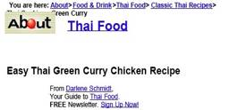 Step 2, Delete Unneeded Material From The Remaining Pages — These pages contain both the Thai Green Curry Chicken links list from the original web page(s) and links to other Thai recipes that Darlene has posted. They also contain some added navigation links to other parts of About.com. This is material I don’t want in my final recipe.