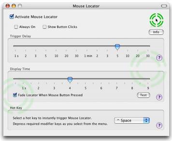 Delay Time — Mouse Locator's trigger delay is the period that the mouse must remain stationary before Mouse Locator will be activated. Once Mouse Locator is activated, the next time that the mouse moves, the locator will be displayed, helping you find your mouse.