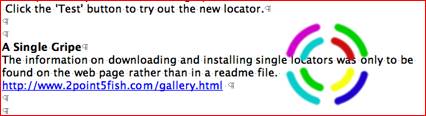 The information on downloading and installing single locators was only to be found on the web page rather than in a readme file. In addition, the explanations of the product controls could only be found in the preferences panel. Make this one a purrfect 5.0. Write and include a readme file. It’s easy, just cut and paste the materials you’ve already created and all a few screen shots and headers.