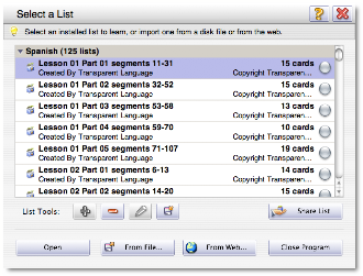 Lists from a file or from the BYKI site can be added to the List page that appears here when the Practice Vocabulary button is selected.