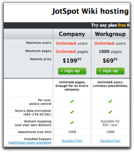 that can be purchased for a monthly fee. Jotspot is probably the most advanced wiki of this type,