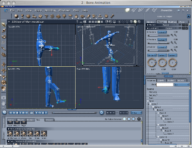 If you have done any 3D work at all, you are going to so like the modelers (Spline, Vertex and Surface, text and formula, environment and shape tools), 3D manipulators, alignment tools, Boolean operations, collision detection and grid projections as well as twist, bend explode, dissolve, spin and other modifiers, special effects such as terrain modeling with real-time filters and shaders, a sky editor, atmosphere and volumetric effects, lens glare, motion blur, depth of field. There are also animation tools such as Bezier, linear, noise, motion path animation, bones and constraints, morph targets, physics animation and an advance particle generator.