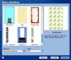 Selecting the format of a card to suit commercial card stock and choosing a background for your card is easy.
