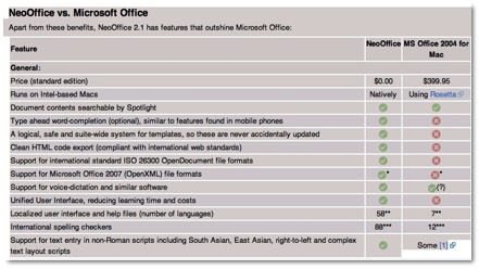 Features — NeoOffice vs. Microsoft Office |