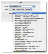 Fonts, An Endless list — Although I’ve mentioned it earlier in my review, I wish I could use the Unsanity FontCard haxie in Writer. I do hate the hassle of long font lists.