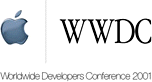 Another WWDC has come and gone, and I received a lot of very useful information, especially for Carbonizing applications. It seems that Apple doesn't have their heads quite as far up their rectums (recta?) as I thought. I am still holding out hope that there will be some changes in the UI within the next year, but I think it will take several months of low adoption to make Steve Jobs see that point. Not nearly as many fun things this year: no Apple Masters (perhaps out of respect for Douglas Adams?), no party at the Tech Museum, no give aways, not even a hardware session. Last year's WWDC broke its previous record attendance with 5300, but I do not believe they had quite that many this year. Although, there was a very nice WWDC leather jacket that I received, which is selling very well on ebay right now. It was also good to see Marty, Joe, TJ, Mike Levine, Michael Wu and William. I am already confirmed to go to my next conference: MacHack.