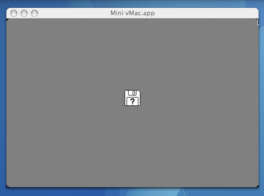 This is essentially how a Mac Plus appears upon startup with no System software. Fortunately, Mini vMac offers a much better user experience than do SheepShaver and Basilisk, and so the next step is easier. Under the File menu, the Open Disk Image... allows us to select a boot image to run in our Mac Plus.