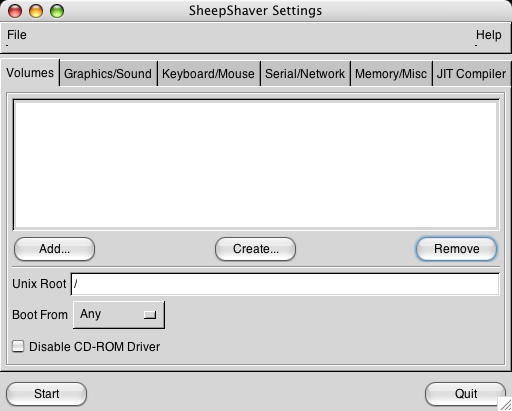 Finally, all these emulators are riddled with annoying bugs and limitations. I find myself constantly rebooting SheepShaver, either due to crashes in the application, or because the slightest configuration change involves closing the application down and restarting. This is very much still a work in progress. Unfortunately, the work is not very fast, as the most recent version of SheepShaver was built about a year and a half ago. I have no idea when (or if) the next version will be released addressing these problems.