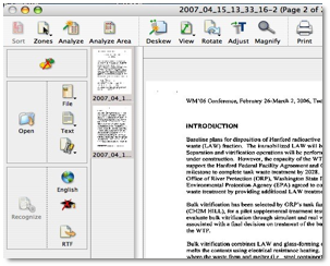 Basically, you install the software, plug in the power cord and USB cable, and let your Macintosh Windows recognize the scanner. The software consists of three items, on separate CDs. The Fujitsu scanner Setup CD is accompanied by a copy of Acrobat 7 Standard and the device optimized copies of Readiris 11.5 and Cardiris 3. Since I have Acrobat 8 Professional installed, I did not use the provided copy of Acrobat 7. Acrobat 8, once selected in the Fujitsu software’s settings worked just fine. I installed the I.R.I.S. software, after taking with the I.R.I.S technical support. The software, which is mostly identical to my Readiris Pro 11.03, has been optimized to make converting ScanSnap output to searchable PDF documents more automatic. I found that to be so.
