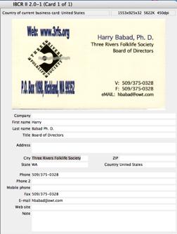 From a FileMaker Pro users perspective, I’d like to be able to edit to template that Card IRIS uses for data input of the OCR’d information to add a second address field. That would allow separate entry of P. O. Box and street address information. This would make transferring data to FMP a bit easier. It also would be great if I could select a specific FileMaker Pro database as a default to input my scanned contact data. (This is the case, done automatically, if you export to your email client (e.g., Apple’s mail or MS Entourage.)