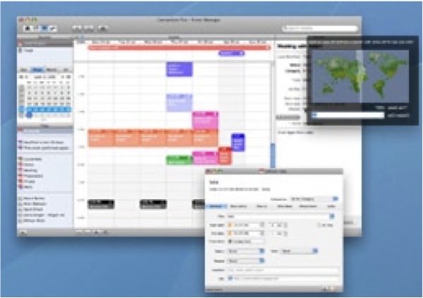 The next main screen is the Event Manager. The calendar. It will initially grab information from your iCal, but that will be the extent of it talking with iCal. From then on it is silent with it’s OS X brother. There has been much discussion on the Objective Decision website on iCal syncing. The companies decision on syncing is basically it will not sync right now, and that’s that. I’m not sure if they have any future plans on syncing in the future, but they do have some interesting discussions on their forum boards about the proposal. You can read all about it at http://objective-decision.com/forum. Again, the filters are fantastic, and can show only the filtered object like iCal. Events can also be linked to tasks, events, communications, files and invitations.