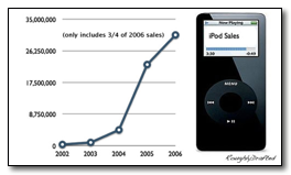 Pitting mobile phones against the iPod in a market share percentage war is therefore rather pointless, unless it can be proven that sales of iPods are dropping dramatically. The sales figures in the above chart show that isnÕt the case.