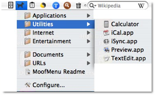 Installation Note: If you are upgrading from an earlier version you need to quit MoofMenu before you overwrite it. You can quit MoofMenu by opening the Configure window and then pressing Alt-Cmd-Q. |