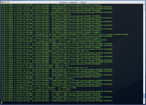 A useful free command line utility included with Mac OS X. Simply run TCPDump from the command line to analyze packet information on your network.