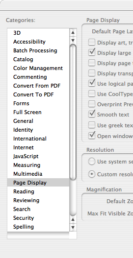 Dealing with Acrobat Preferences — This book is aimed at readers with some experience in using Acrobat 7 but that is no excuse for the author discussing the large number of available preference options (pages 17-18 and elsewhere) without showing a detailed screen view of the preference panel that shows the list of accessible preferences.