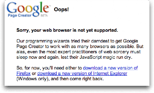 I hope it’s just coincidence that the Google “Page Creator” abbreviates to “PC” and that it’s not a message from the clot of PC users that appears to be blocking Google’s technical heart.