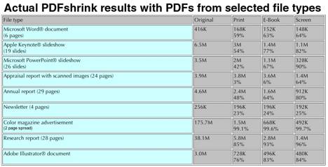 Jim Felici noted as in a Macworld mini review of PDFshrink 3.0.1… “When it comes to PDF files, one size, doesn't fit all, especially if you want to use such files on the Web. However, if what I tested proves more universally true, Apago's PDFshrink 3.0.1 can help make many of your larger PDF files smaller by letting you alter image resolution and compression and remove unwanted content.