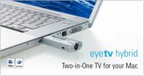 With its classic matte aluminum finish and surprisingly small size for such a versatile product, the EyeTV Hybrid is a perfect complement to the Mac. It features a USB 2.0 interface for the streaming of superior quality, uncompressed TV content to your Mac. EyeTV Hybrid is USB powered and therefore requires no external power supply, and contains a built-in and full-size coaxial plug.